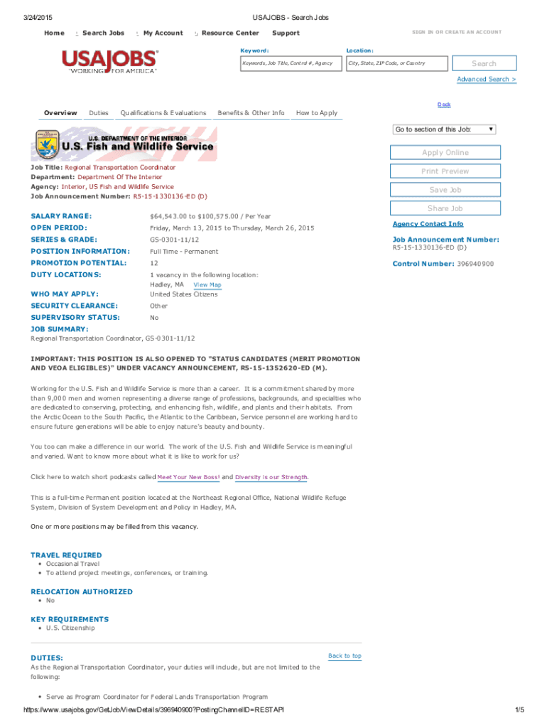 3/24/2015 HomeUSAJOBSSearchJobs SearchJobsMyAccountResourceCenterSupportSIGNINORCREATEANACCOUNTKeyword:Location:Keywords, Subtitle, Control#, AgencySearchCity, State, Opcode, orCountryAdvancedSearchDockOverviewDutiesQualifications&EvaluationsBenefits&OtherInfoHowtoApplyGotosectionofthisJob:ApplyOnline