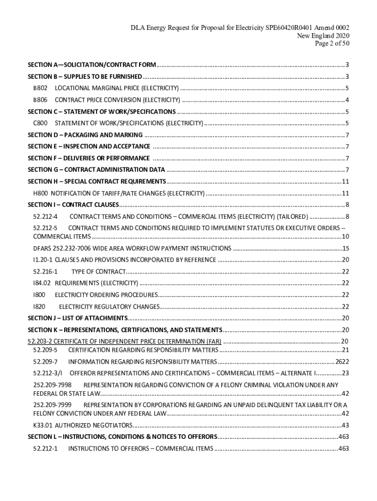 Get the free DLA Energy Request for Proposal for Electricity SPE60420R0401 ...