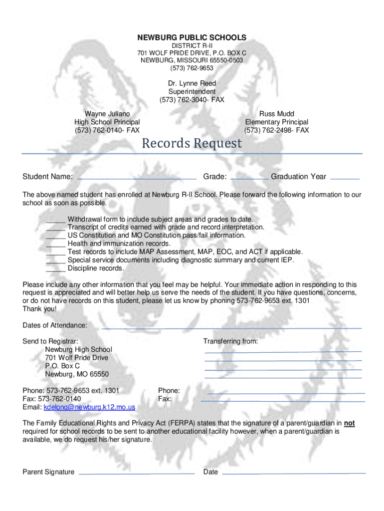 Get the free PDF Records Request - Newburg R-II School District