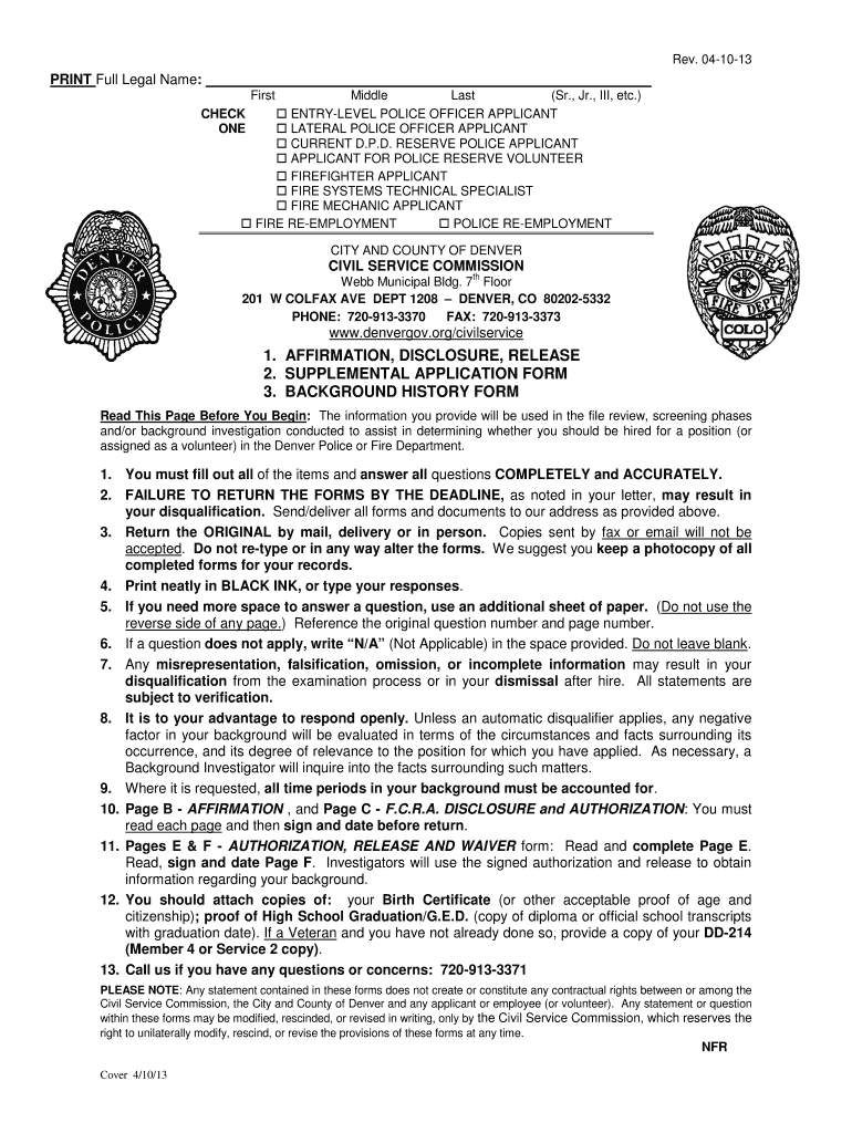 Eligibility Criteria for the Denver Police and Fire Department Application Form