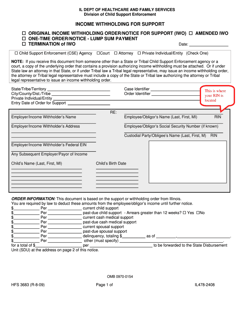 Field-by-Field Instructions for the Illinois Income Withholding Order for Support