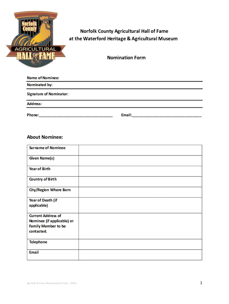 Get the free Norfolk County Agricultural Hall of Fame at the Waterford ...