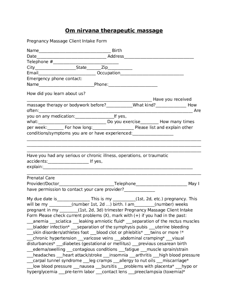 What is Om nirvana therapeutic massage Form?