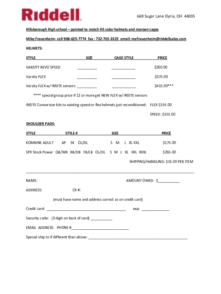 669 Sugar Lane Elyria, OH 44035 Hillsborough High school painted to match HS color helmets and maroon cages Mike Frauenheim cell 9086257774 faxes : 7327013325 email: mefrauenheim riddellsales.com