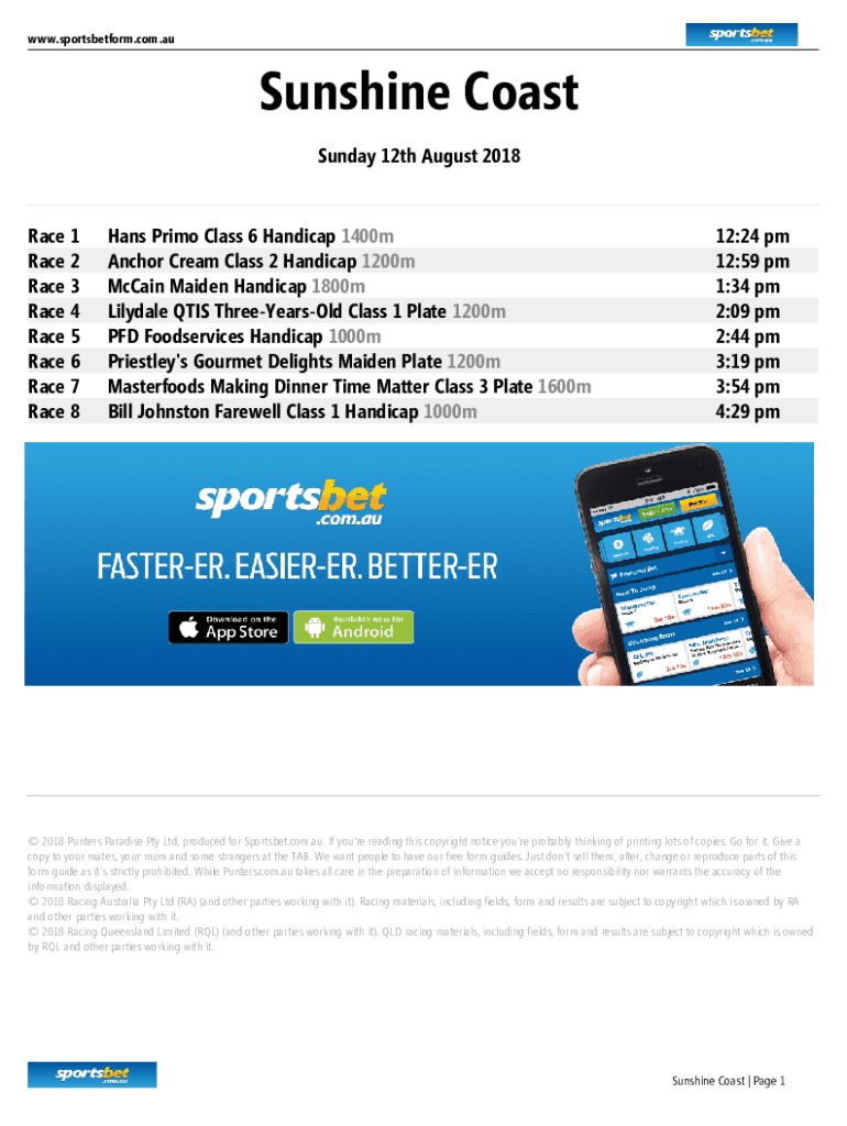 Get the free Sunshine Coast Form Guide - Sunday 12th August 2018