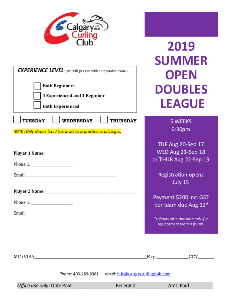 EXPERIENCE LEVEL: (we will put you with comparable teams) Both Beginners 1 Experienced and 1 Beginner Both Experienced TUESDAYWEDNESDAYTHURSDAYNOTE : Only players listed below will have practice ice