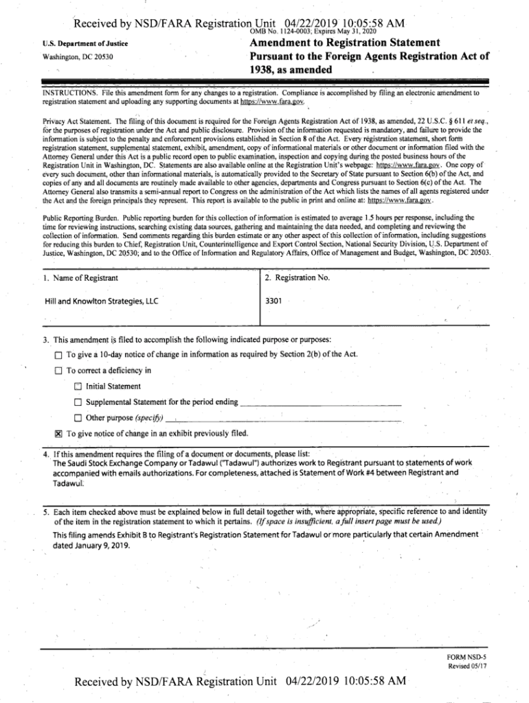 OMB No. 11240003; Expires May 31,2020Amendment to Registration Statement