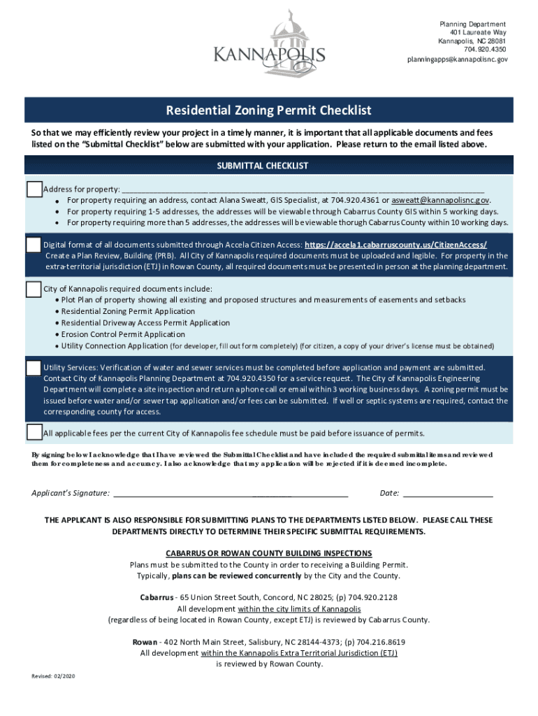 Planning Department 401 Laureate Way Kannapolis, NC 28081 704.920.4350 planning apps Kannapolis. Nonresidential Zoning Permit Checklist So that we may efficiently review your project in a timely manner,