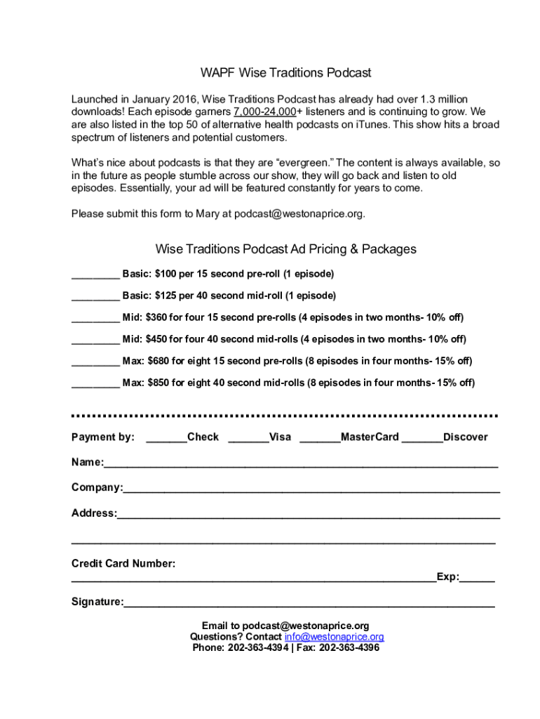 Get the free Wise Traditions Podcast Ad Form 2018 - Weston A. Price Foundation