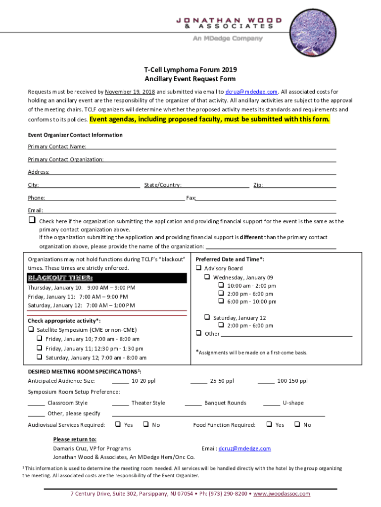 Get the free T-Cell Lymphoma Forum 2019 Ancillary Event Request Form ...