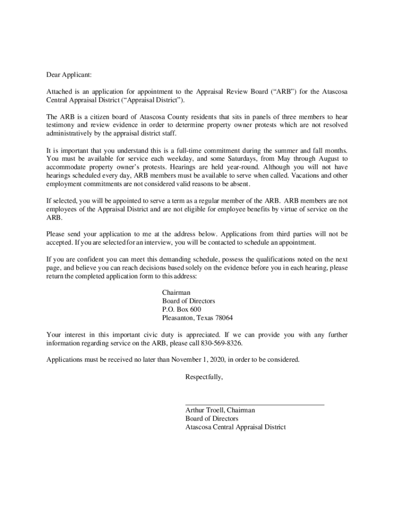 Attached is an application for appointment to the Appraisal Review Board (ARB) for the Tacoma