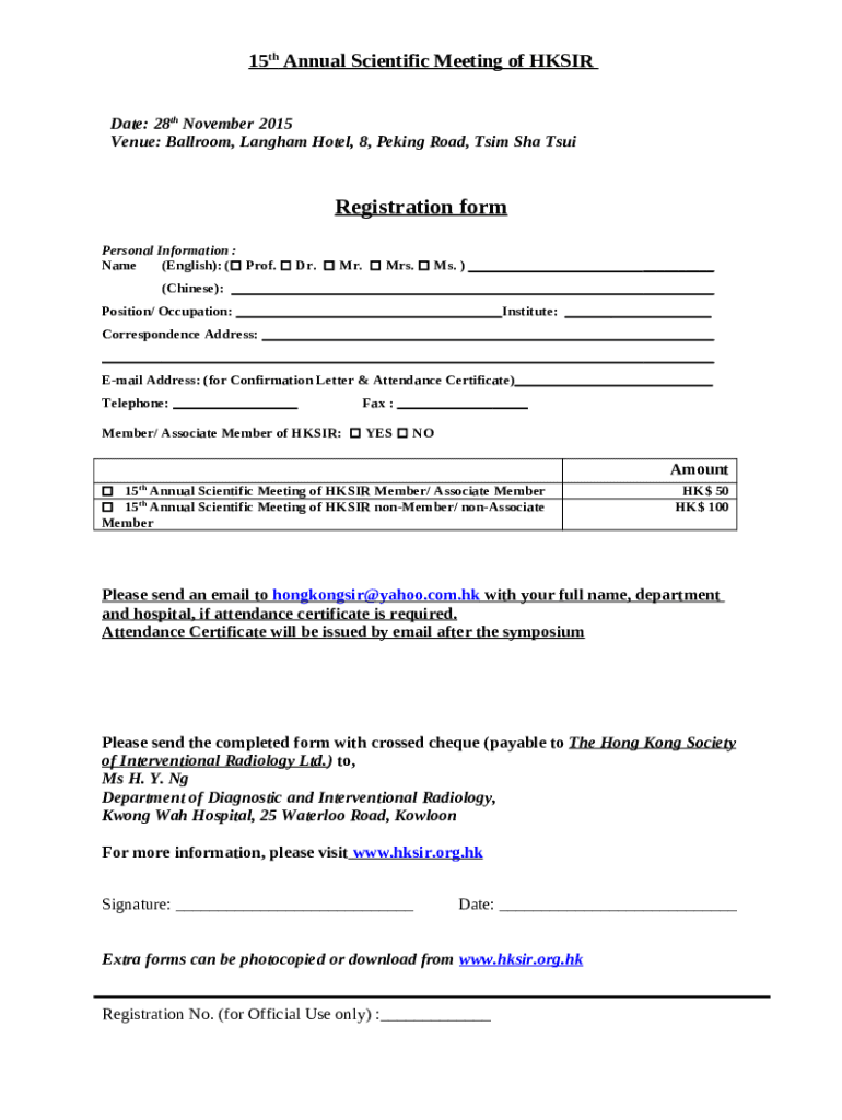 The Name(English): ( - hksir org is a writable document which can be filled-out and signed for specific purposes. Next, it is furnished to the exact addressee to provide specific details of any kinds. The completion and signing is possible in hard copy by hand or using an appropriate tool e. g. PDFfiller. Such services help to complete any PDF or Word file online. It also allows you to edit it according to your needs and put a legal e-signature. Once finished, the user ought to send the Name(English): ( - hksir org to the respective recipient or several of them by mail and also fax. PDFfiller is known for a feature and options that make your Word template printable. It provides a variety of options for printing out. No matter, how you'll send a form after filling it out - physically or by email - it will always look neat and firm. To not to create a new editable template from the beginning all the time, make the original Word file as a template. Later, you will have an editable sample.