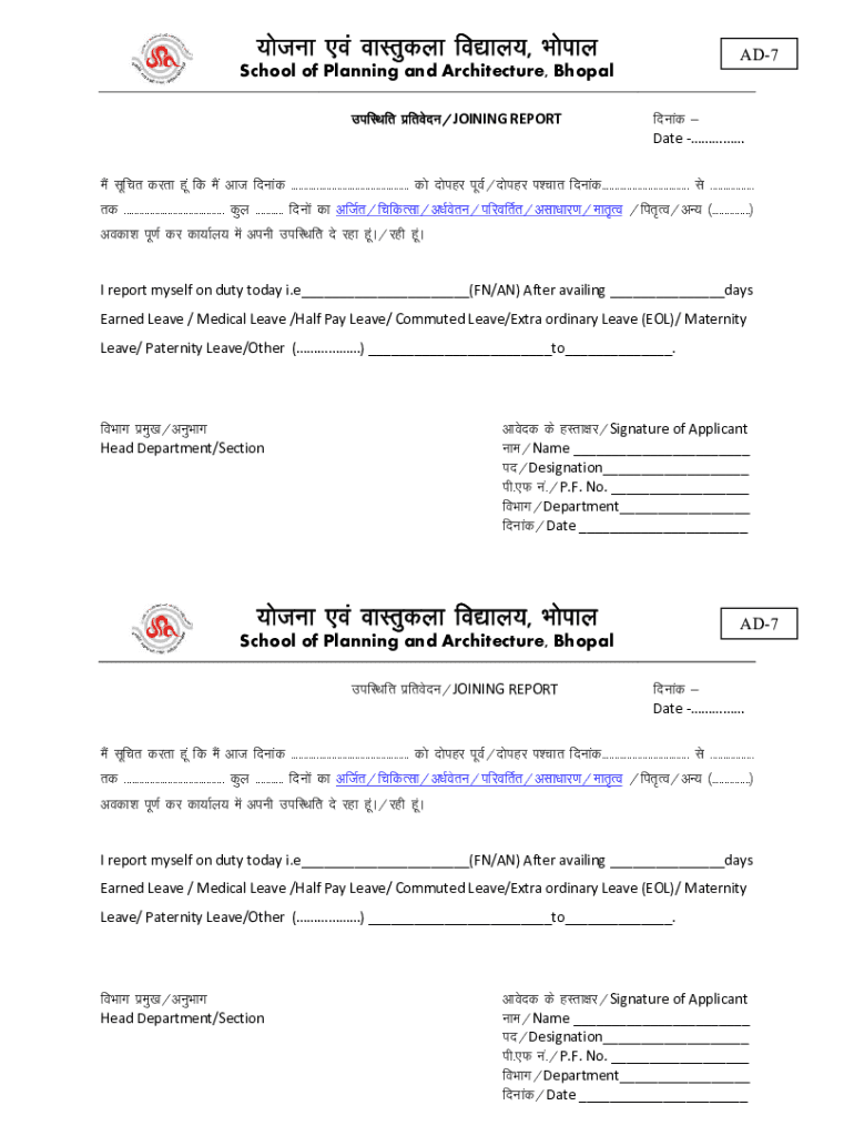 Stuck, OA okLrqdyk for KY; HkksikyAD7School of Planning and Architecture, Bhopal milker izfrosnu JOINING REPORTfnukad & Date ESA lifer dark GPA FD ESA vat nuked DNS design two Z design IPR nuked ls