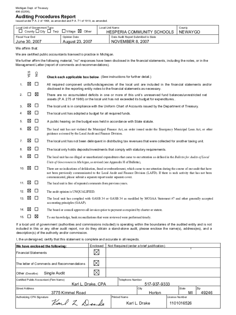 496 (02/06), Auditing Procedures Report