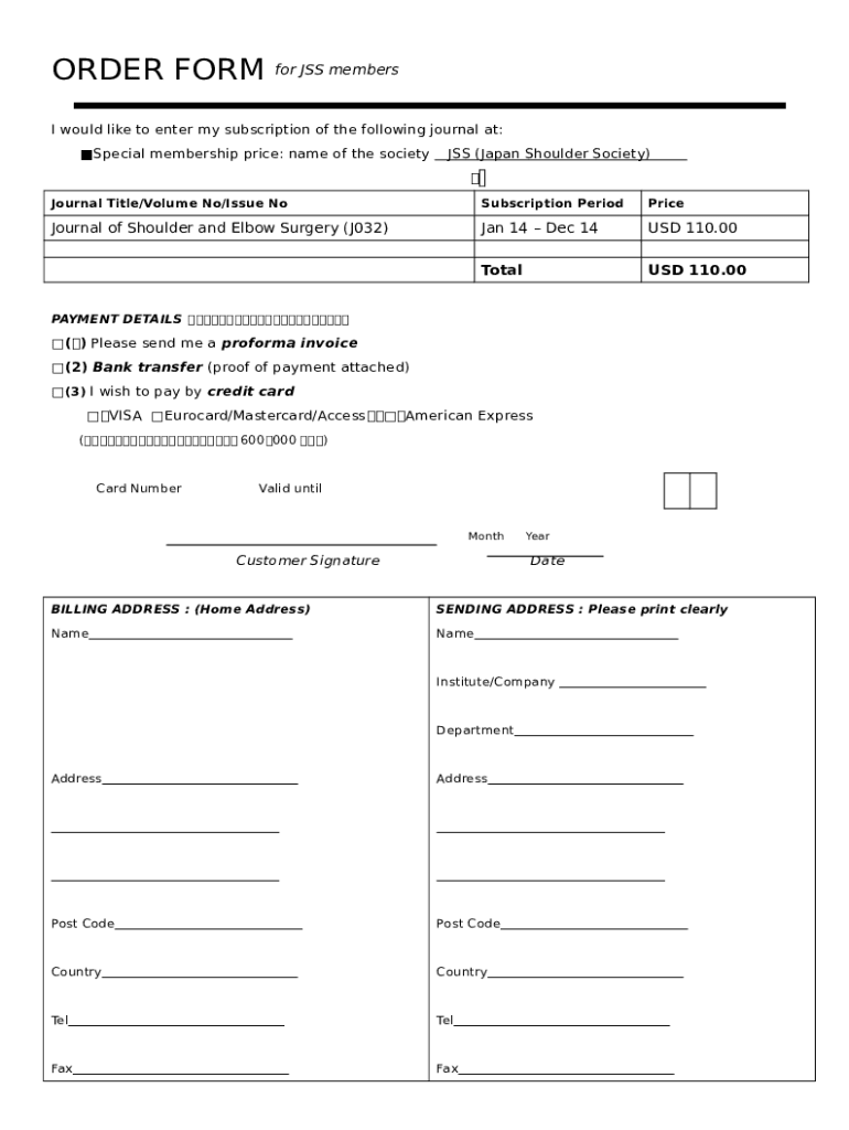 The ORDER for 2003 Jourals Subscription YEN is a fillable form in MS Word extension that can be completed and signed for specific reasons. Next, it is provided to the actual addressee in order to provide specific details of certain kinds. The completion and signing can be done or via a suitable service like PDFfiller. Such applications help to complete any PDF or Word file without printing them out. It also allows you to customize it depending on your needs and put a legal digital signature. Upon finishing, the user ought to send the ORDER for 2003 Jourals Subscription YEN to the respective recipient or several recipients by mail or fax. PDFfiller offers a feature and options that make your blank printable. It includes a variety of settings when printing out. It does no matter how you will distribute a document - physically or by email - it will always look well-designed and firm. To not to create a new file from scratch every time, make the original form as a template. After that, you will have a customizable sample.