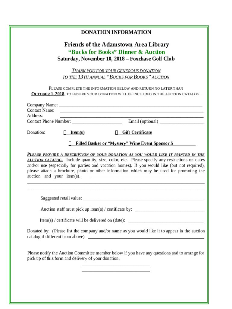 What is Bucks for Books Donations - Friends of the Adamstown Area ... Form?