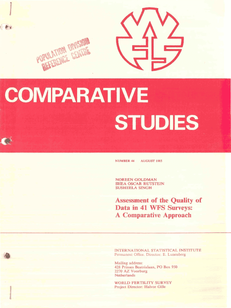 I 'NUMBER 44AUGUST 1985NOREEN GOLDMAN SHEA OSCAR BRUSTEIN SUSHEELA SING Assessment of the Quality of Data in 41 WAS Surveys: A Comparative ApproachINTERNATIONAL STATISTICAL INSTITUTE Permanent Office.
