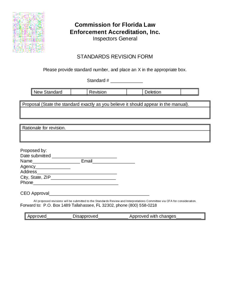 The Enforcement Accreditation, Inc. (CFA) - Florida Department Of ...Accreditation - Florida Department of Law EnforcementCriminal Justice Standards & Training Commission (CJSTC)Enforcement Accreditation, Inc. (CFA) - Florida Department Of ... is a Word document that can be completed and signed for specified reasons. Then, it is furnished to the relevant addressee to provide certain details of certain kinds. The completion and signing may be done or via an appropriate application like PDFfiller. These tools help to complete any PDF or Word file without printing out. It also allows you to edit its appearance depending on the needs you have and put a valid digital signature. Once done, the user ought to send the Enforcement Accreditation, Inc. (CFA) - Florida Department Of ...Accreditation - Florida Department of Law EnforcementCriminal Justice Standards & Training Commission (CJSTC)Enforcement Accreditation, Inc. (CFA) - Florida Department Of ... to the recipient or several ones by email or fax. PDFfiller has a feature and options that make your blank printable. It provides a number of options for printing out appearance. It does no matter how you'll distribute a form - physically or by email - it will always look professional and clear. To not to create a new writable document from scratch every time, make the original document into a template. After that, you will have a rewritable sample.