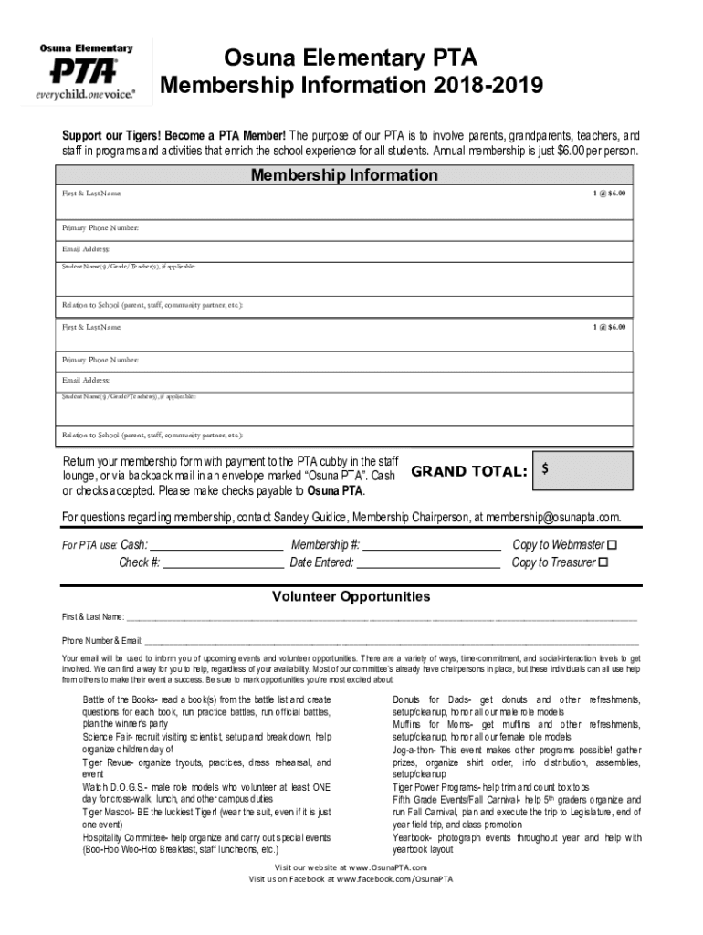 Sun Elementary PTA Membership Information 20182019 Support our Tigers! Become a PTA Member! The purpose of our PTA is to involve parents, grandparents, teachers, and staff in programs and activities