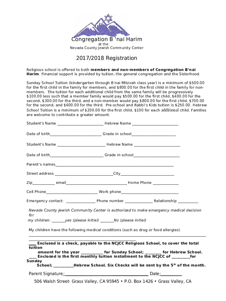 What is Nevada County Jewish Community Center - Congregation B'Nai ... Form?