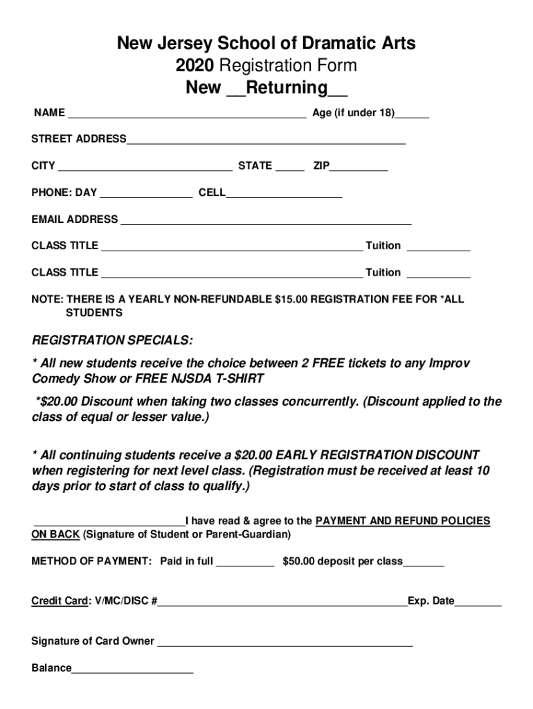 Get the free New Jersey School of Dramatic Arts 2020 Registration Form ...