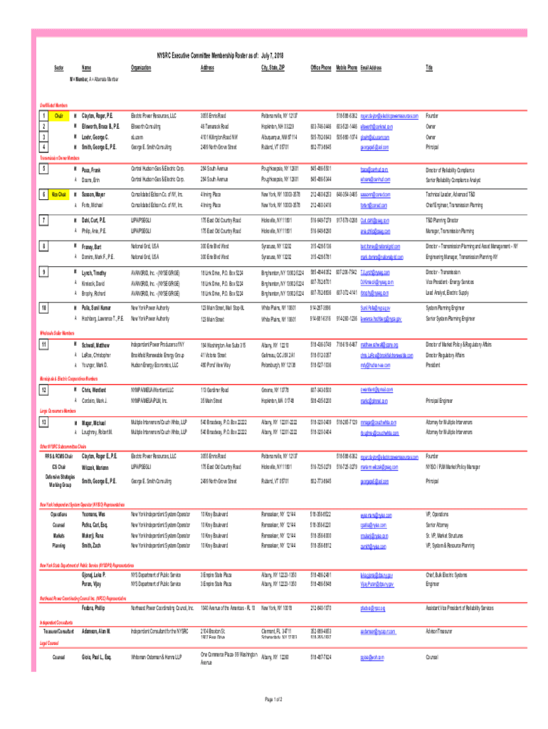 Get the free NYSRC Executive Committee Membership Roster as of: July 7, 2018