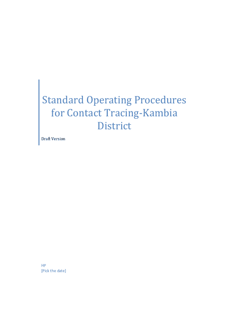 Standard Operating Procedures for Contact TracingKambia District Draft Version HP Pick the date 1. Introduction: Proper contact tracing requires concerted efforts from various people to ensure that