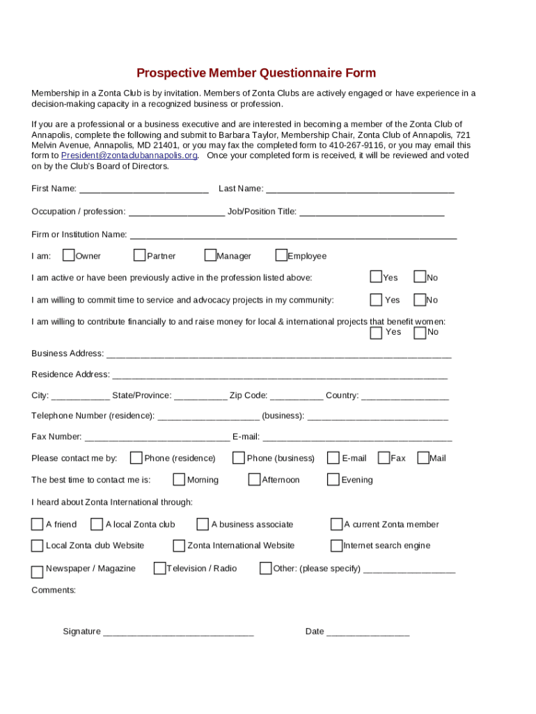 - Find the Prospective Member Questionnaire - Zonta Club of ... form in PDFfiller’s filebase.