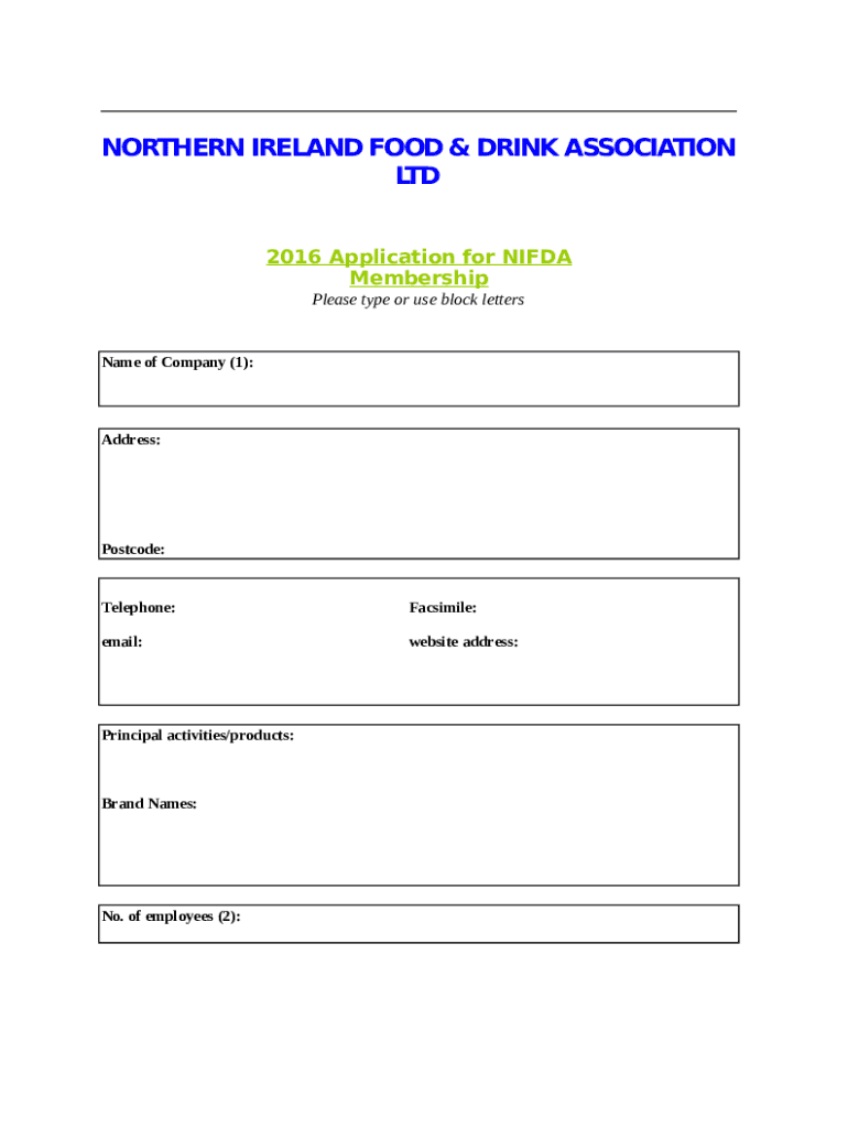Instructions for the NORTHERN IRELAND FOOD & DRINK ASSOCIATION LTD form