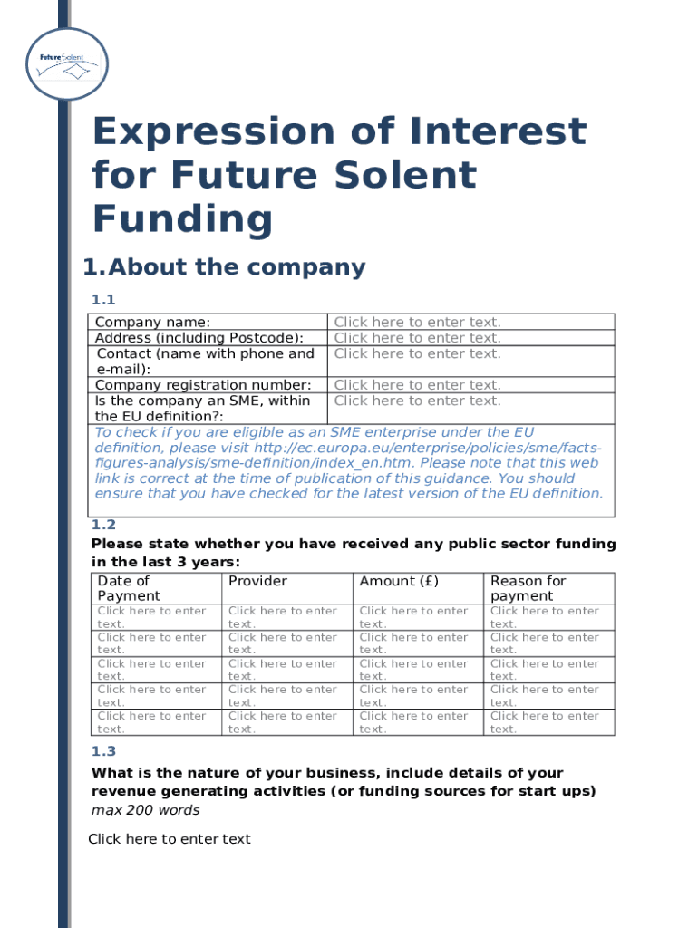 Template Expression of Interest for Future Solent Funding instructions