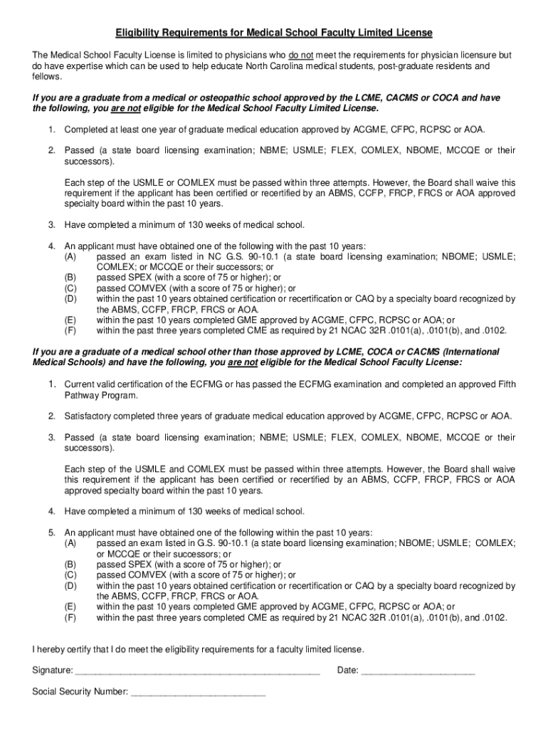 The Medical School Faculty License is limited to physicians who do not meet the requirements for physician licensure but