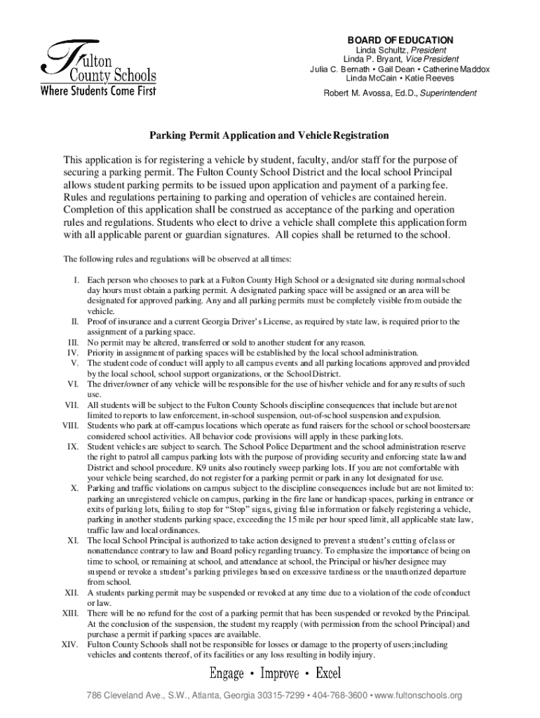 BOARD OF EDUCATION Linda Schultz, President Linda P. Bryant, Vice President Julia C. Bernat Gail Dean Catherine Maddox Linda McCain Katie Reeves Robert M. Fossa, Ed. D., SuperintendentParking Permit