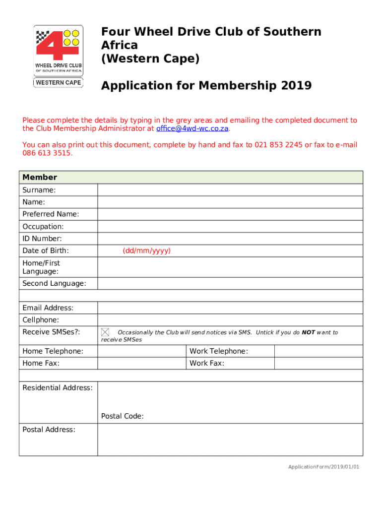 What is Four Wheel Drive Club of Southern Africa (Western Cape ... - 4wd-wc co Form?