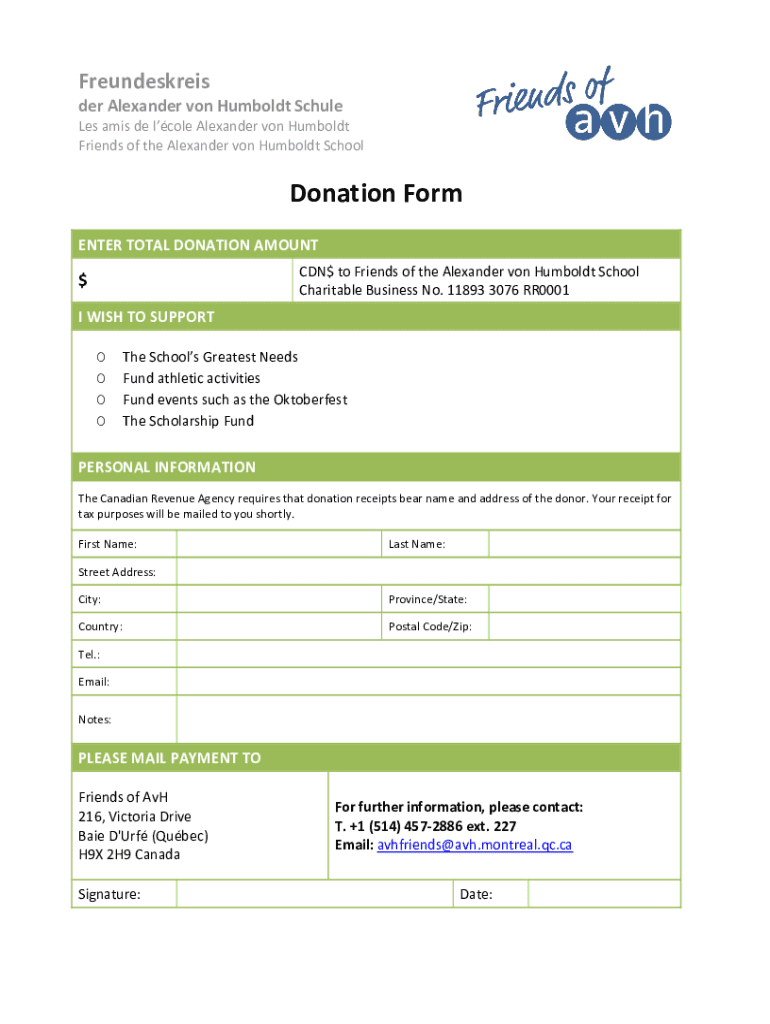 Friends of the Alexander von Humboldt SchoolDonation Form
