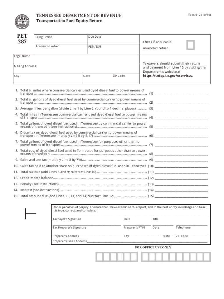 TENNESSEE DEPARTMENT OF REVENUERV00112 (10/19)Transportation Fuel Equity Return PET