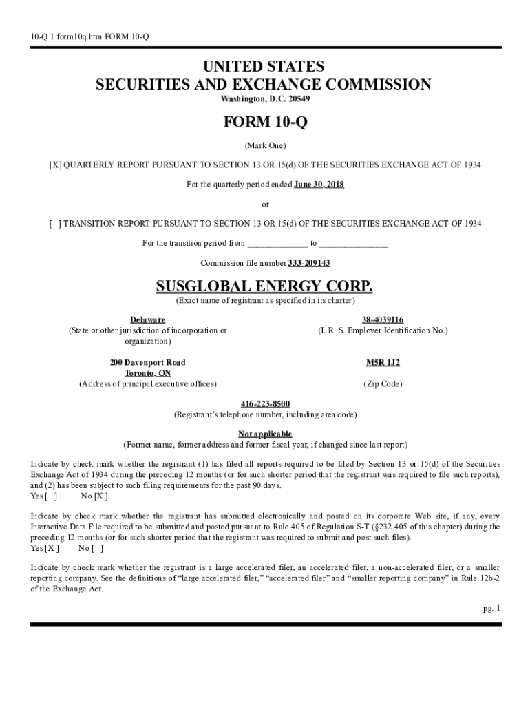 Get the free FORM 10-Q SECURITIES AND EXCHANGE ... - SusGlobal Energy