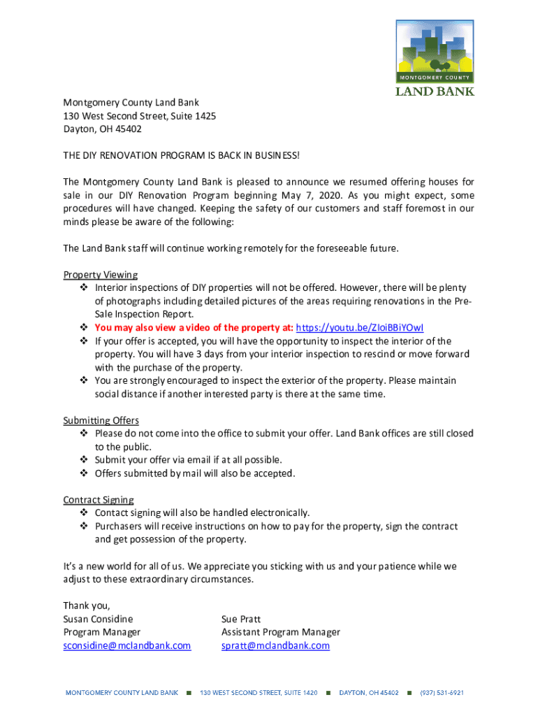 The Montgomery County Land Bank is pleased to announce we resumed offering