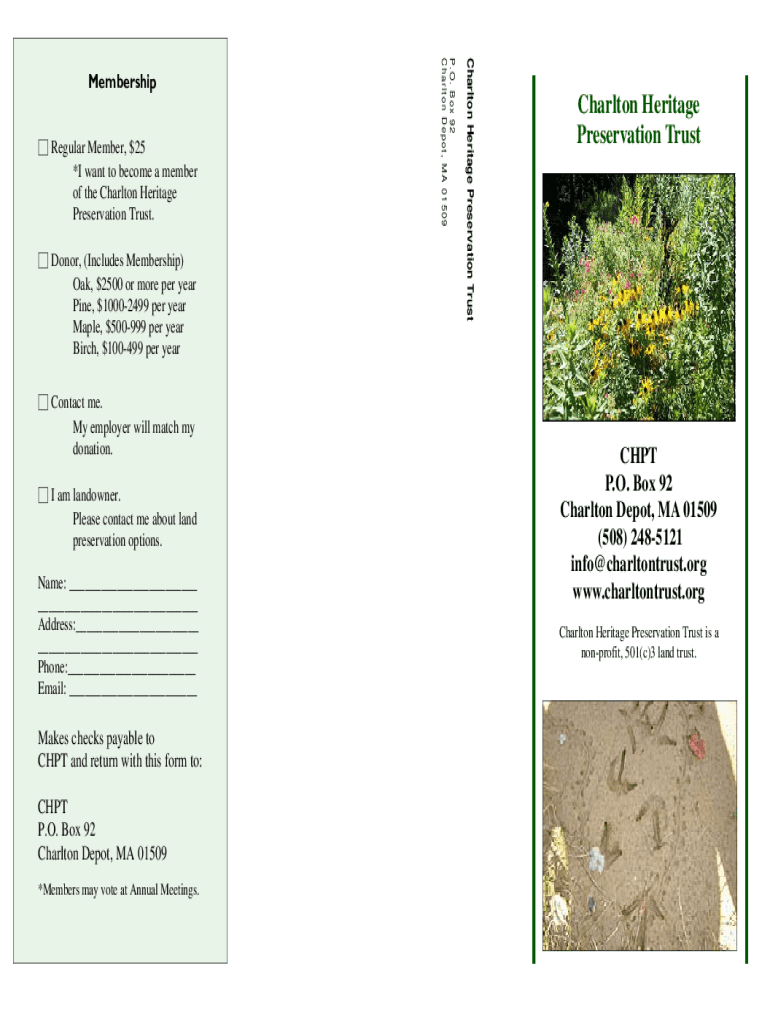 Donor, (Includes Membership) Oak, $2500 or more per year Pine, $10002499 per year Maple, $500999 per year Birch, $100499 per year Contact me. My employer will match my donation. I am landowner. Please