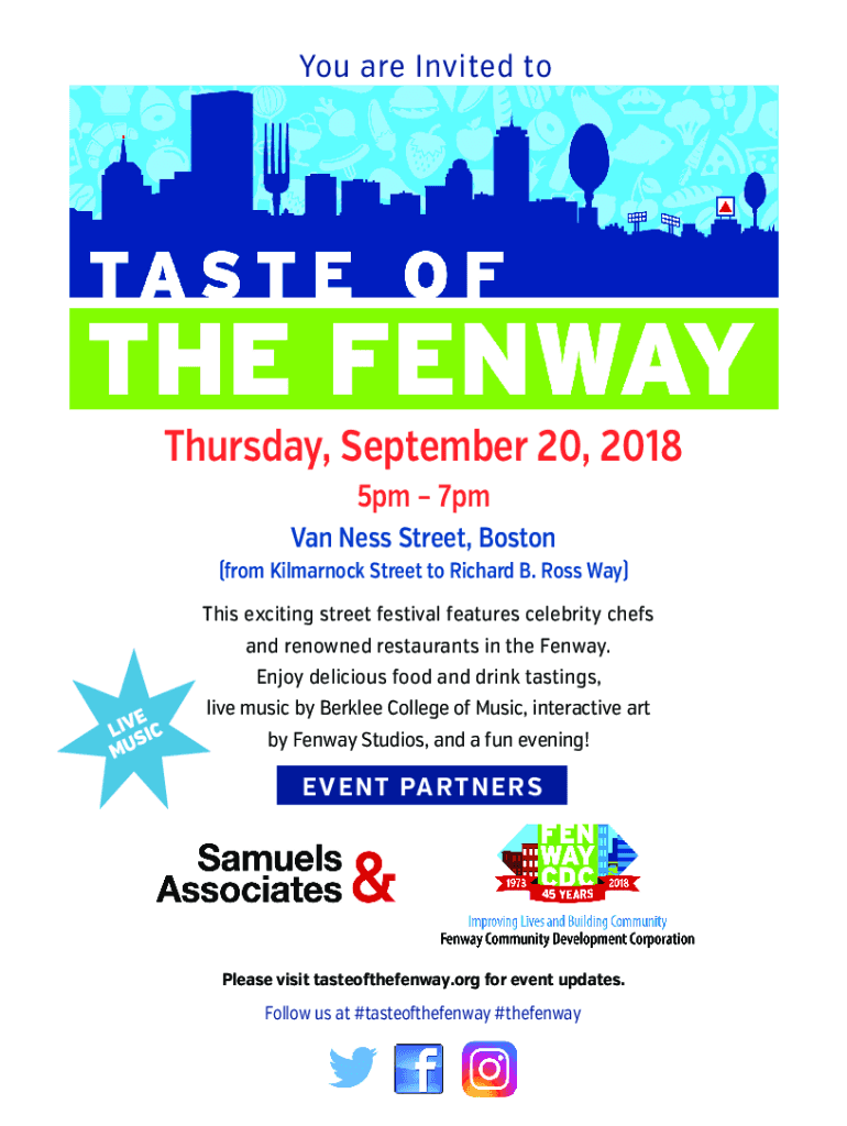 You are Invited to Thursday, September 20, 2018 5pm 7pm Van Less Street, Boston (from Kilmarnock Street to Richard B. Ross Way) This exciting street festival features celebrity chefs and renowned
