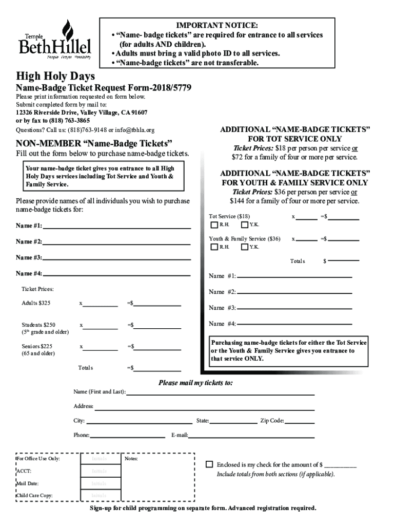 High Holy DaysIMPORTANT NOTICE: Name badge tickets are required for entrance to all services (for adults AND children). Adults must bring a valid photo ID to all services. Name badge tickets are not