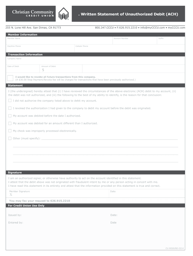Get the free Unauthorized Debit Dispute Form