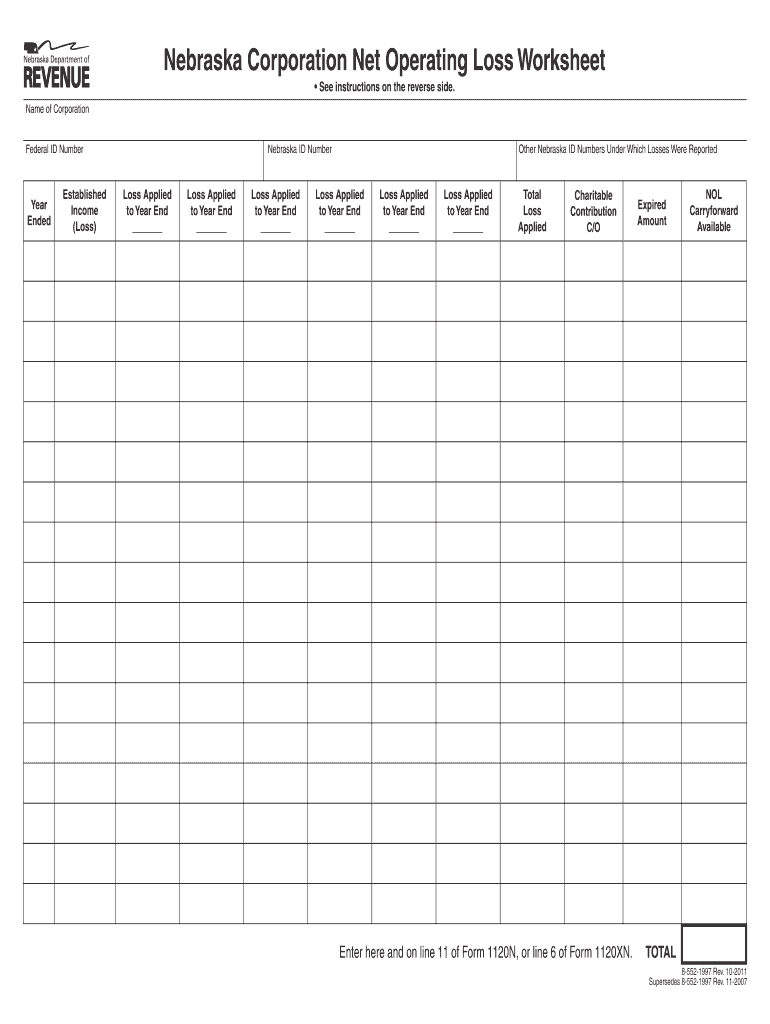 Any corporation based in Nebraska that has incurred a net operating loss and wishes to carry it forward to offset future taxable income must complete this worksheet.