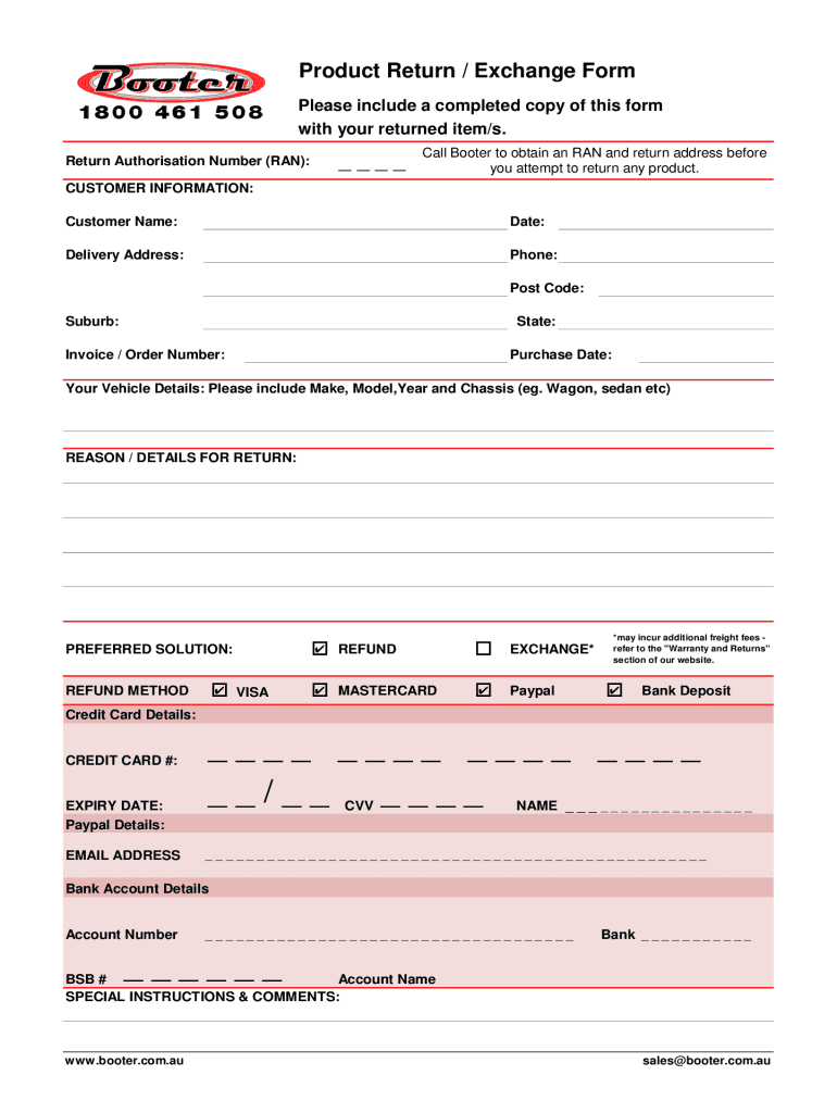 Product Return / Exchange Form Please include a completed copy of this form with your returned item/s. Return Authorization Number (RAN):Call Booster to obtain an RAN and return address before you