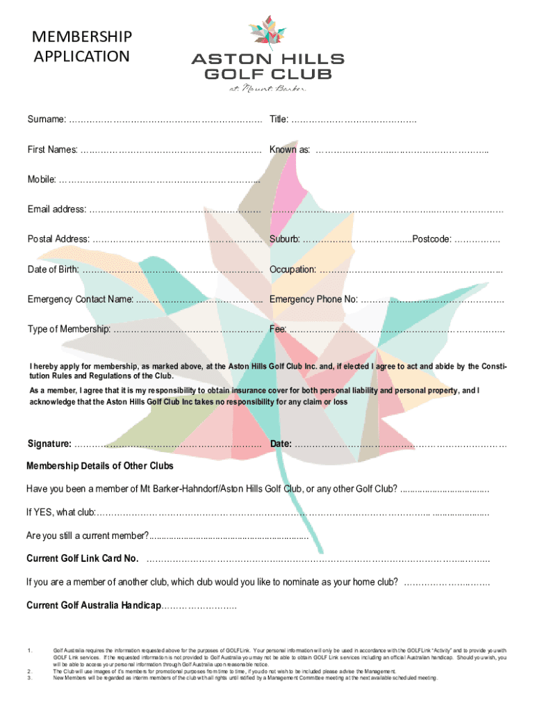 MEMBERSHIP APPLICATIONSurname: Title:. First Names:. Known as: ...... Mobile: ... Email address:.