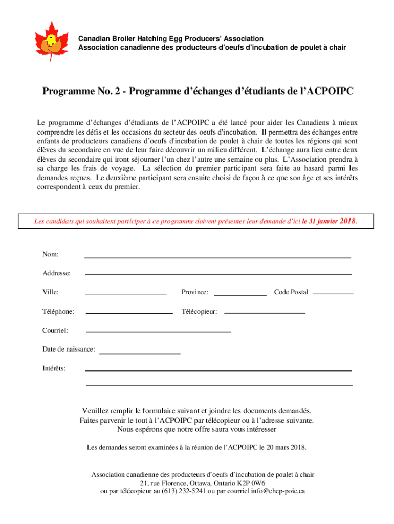 Obtenir le gratuit Form #2 Student Exchange Program Application 2018 FRENCH.pub