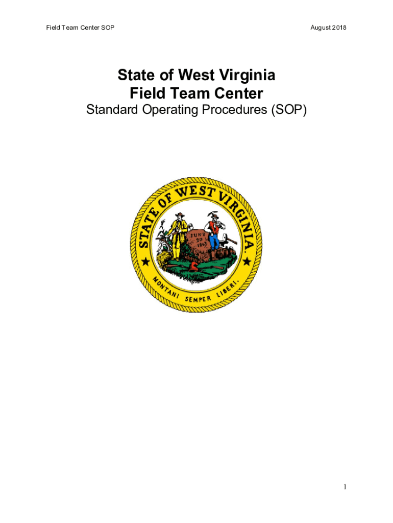 Field Team CenterStandard Operating Procedures (SOP)1Field Team Center SOP August 2018State of West Virginia Field Team Center SOP