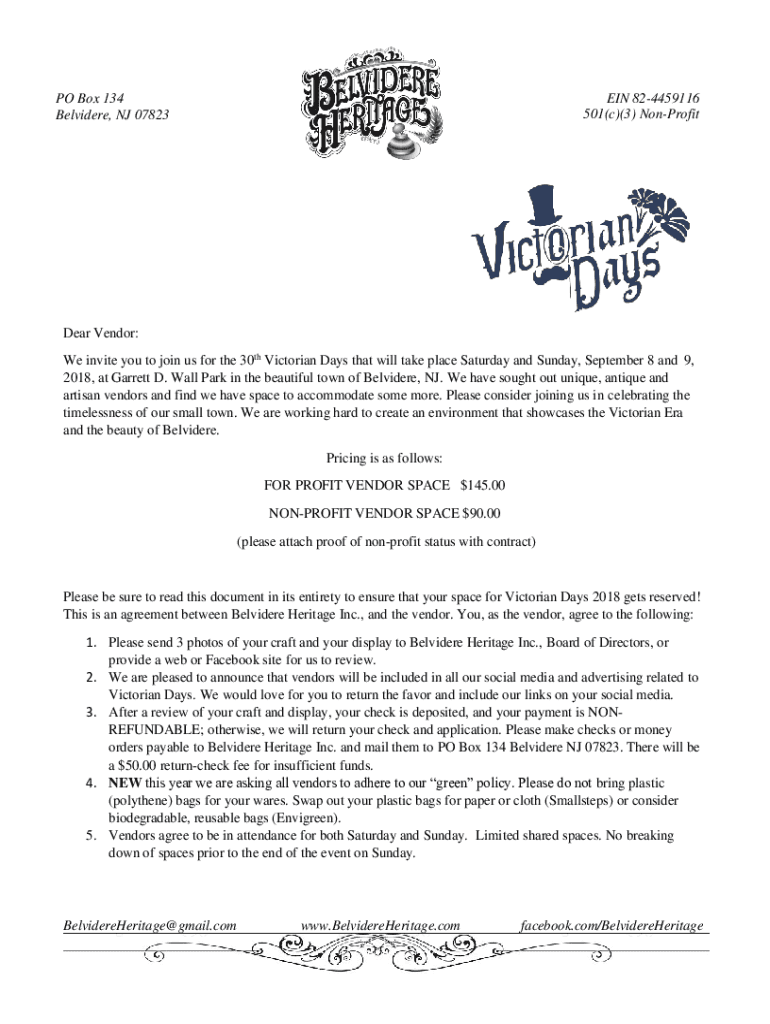 Belvedere, NJ 07823Dear Vendor: