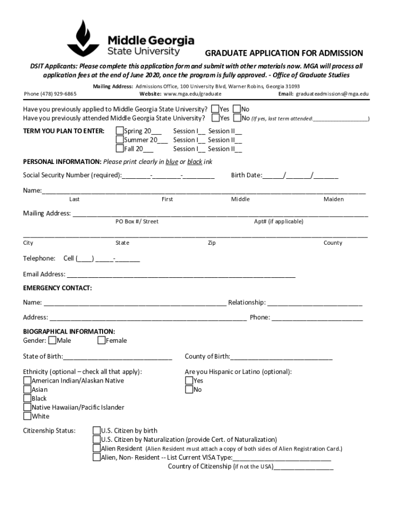 Get the free Graduate DSIT Application.pdf - Middle Georgia State University