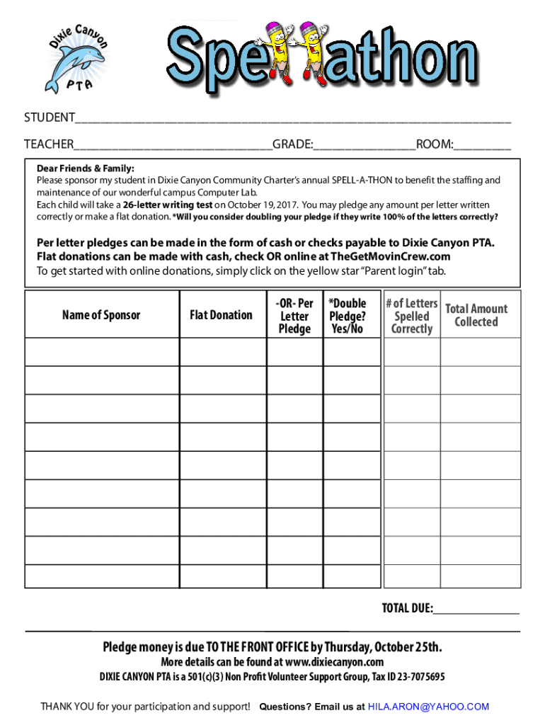 STUDENT TEACHER GRADE: ROOM: Dear Friends & Family: Please sponsor my student in Dixie Canyon Community Charters annual SPECULATION to benefit the staffing and maintenance of our wonderful campus