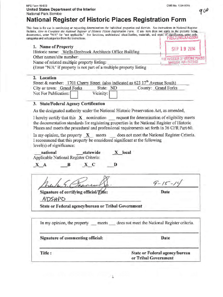 Get the free NPS Form No. 1024-0018